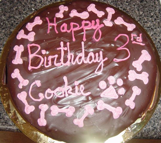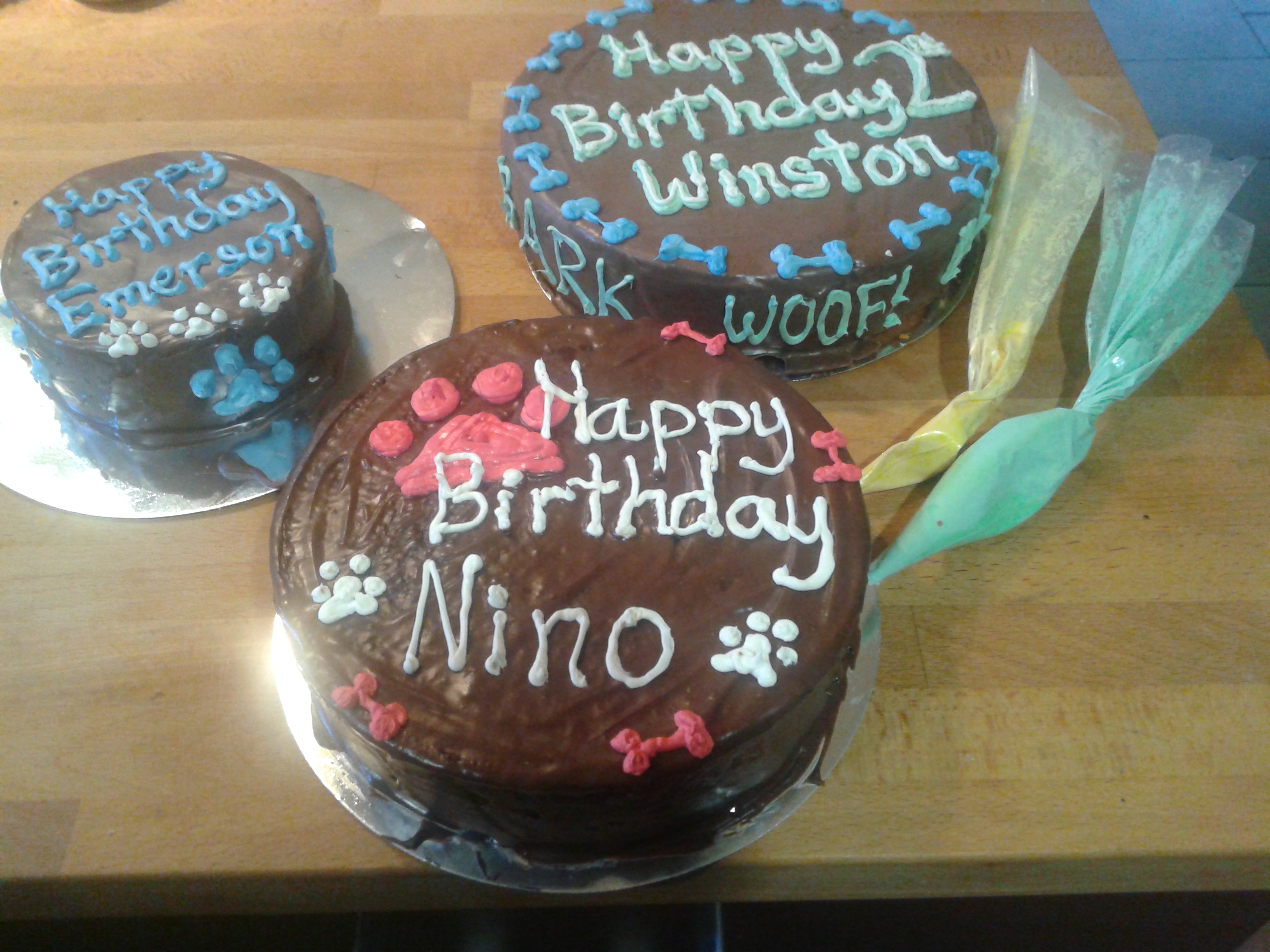 (a dog-safe chocolate substitute) icing and decorations with colored yogurt